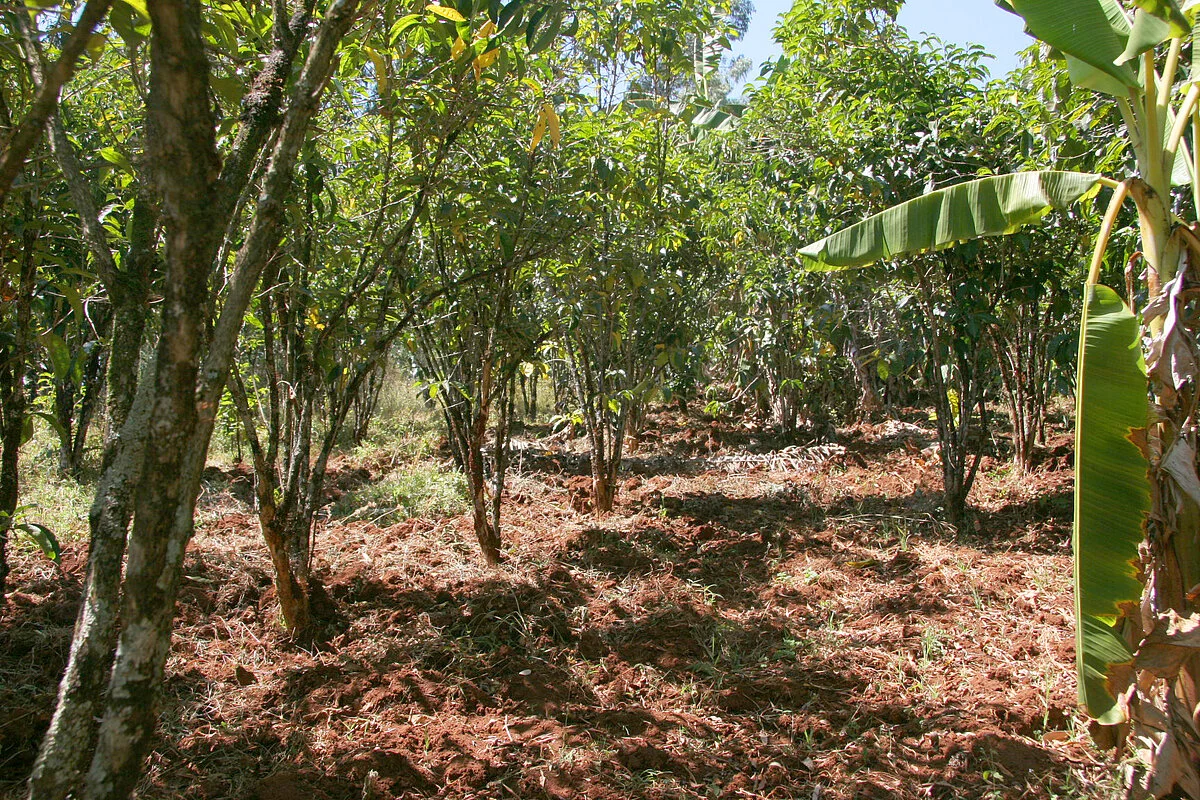 90% du café provient de petits producteurs qui cultivent le café sur de micro-parcelles au sein de fermes diversifiées. L’agriculture est vivrière : cela signifie que les agriculteurs produisent leur propre nourriture et privilégient le travail sur les cultures alimentaires (céréales, bananier d’Abyssinie ou “enset”, etc) avant de s’occuper de leurs quelques plants de café situés à proximité du jardin-verger familial, appelé le “daddo”.*
